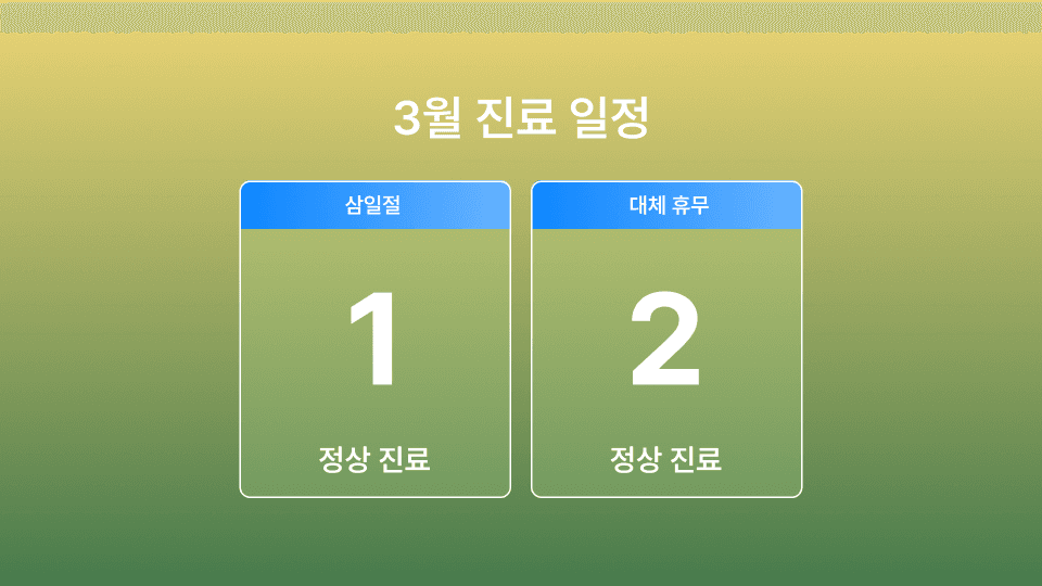 🌱 3월 2일 (대체휴무) – 정상 진료