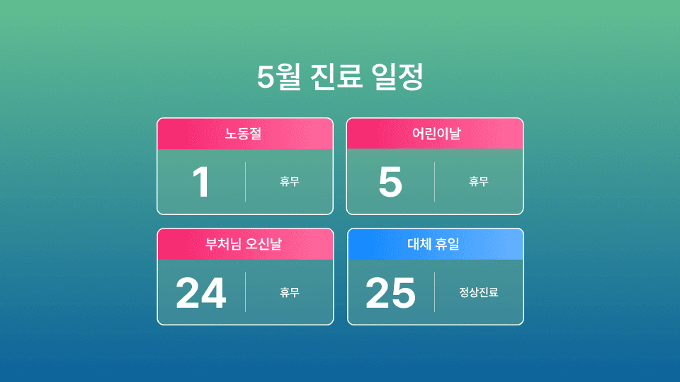 🌼 5월 25일 (대체 휴일) – 정상 진료