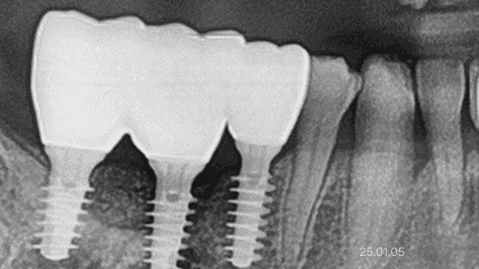 뼈가 잘 재생된 것이 확인되면, 그 부위에 임플란트를 심어 안정적인 고정과 기능을 완성합니다. 복잡한 상황에서도 안전하게 치료를 완성할 수 있는 방법입니다.